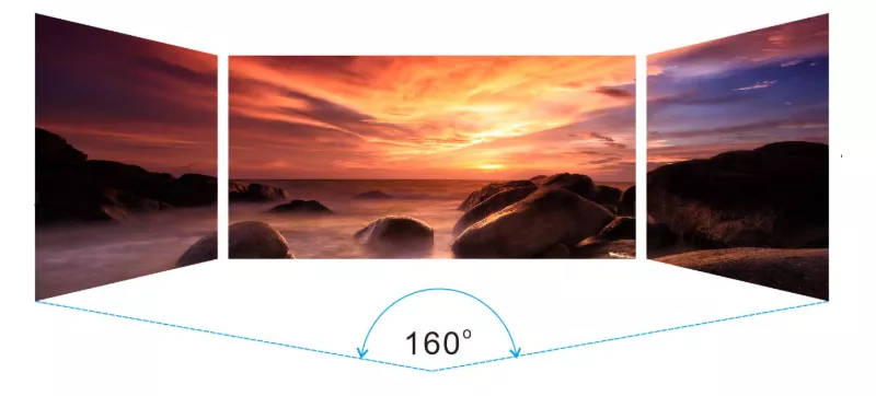 La pantalla cuenta con un ángulo de visión de 160°, lo que garantiza una clara visibilidad desde cualquier posición.